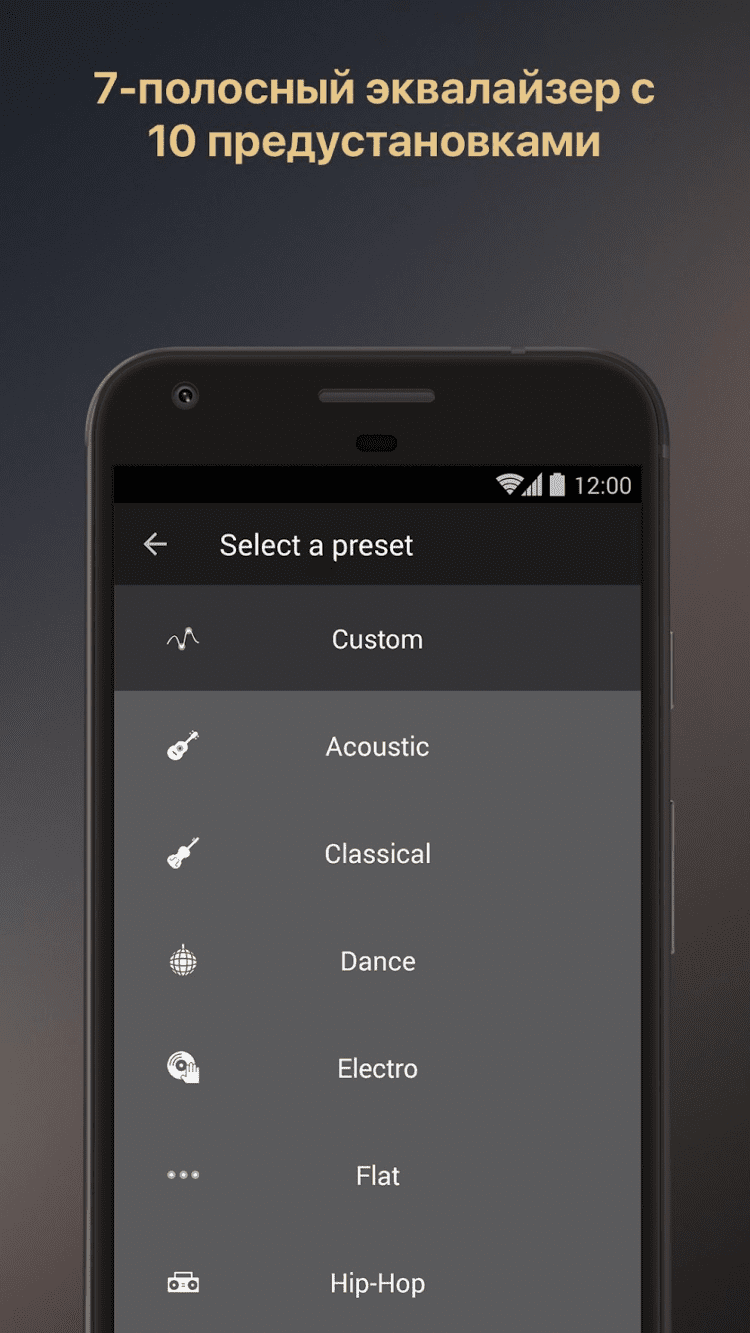 Equalizer music player booster - программа, которая поможет вам насладиться прослушиванием любимой музыки и улучшить её звучание при помощи пятиполосного эквалайзера. Используйте встроенные пресеты и создавайте собственные звуковые эффекты в эквалайзере. Вы сможете быстро применять последние настройки при воспроизведении музыки различных жанров и тем самым менять качество звучания в плеере.