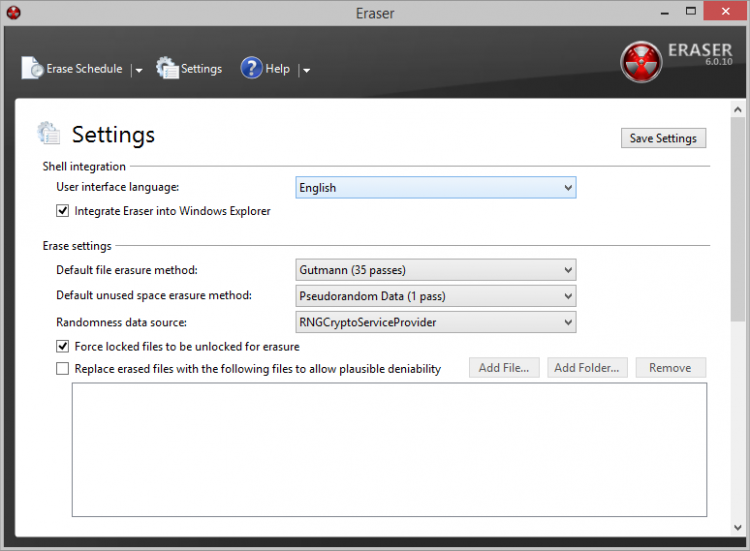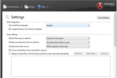 Если нужна программа для бесследного удаления файлов с жесткого диска персонального компьютера, стоит скачать Eraser. Помимо тотальной чистки, приложение позволяет перезаписывать пространство в памяти по настраиваемым шаблонам, исключая возможность восстановления данных.