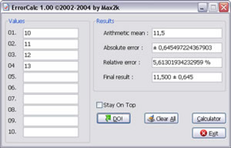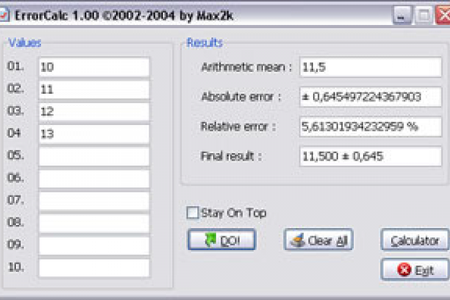 ErrorCalc - это калькулятор для расчет арифметического значения чисел, а так же абсолютной и относительной погрешностей.