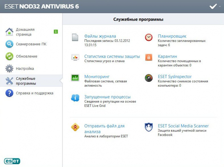 ESET NOD32 Антивирус - для защиты компьютера, ноутбука и нетбука пользователю потребуется скачать ESET NOD32 антивирус. Программа предотвращает кражу приватных документов и данных, установку программ с вирусами и блокирует навязчивую рекламу. Написан ESET NOD32 антивирус для Windows и Linux. Загрузить ESET NOD32 антивирус можно для блокировки сетевых атак, анти-спама, зараженных сайтов и проверки как жесткого диска ПК, так и внешних носителей на наличие вирусов.