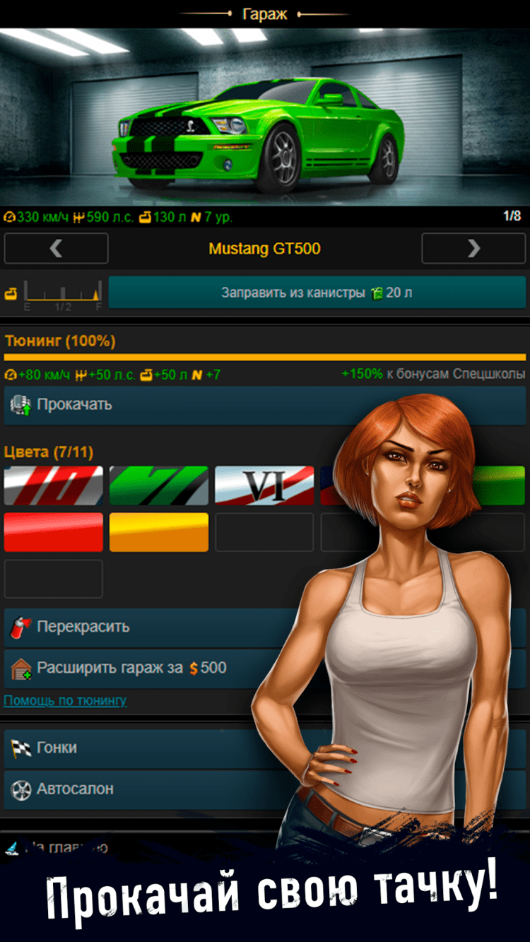 - ваш личный автомобиль, которые вы можете прокачивать, и на которых участвовать в нелегальных гонках;