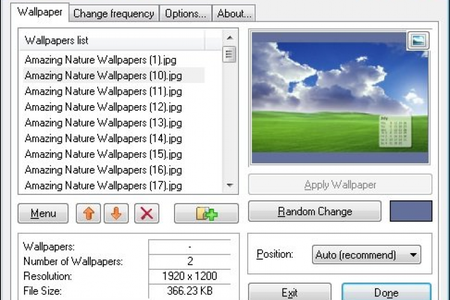 EvJO Wallpaper Changer - это удобная и простая в использовании программа для управления обоями вашего рабочего стола. Программа дает возможность сменить обои на рабочем столе при каждом запуске операционной системы, с заданным периодом времени или при выходе из программы. Обои автоматически сменяются последовательно или в произвольном порядке.