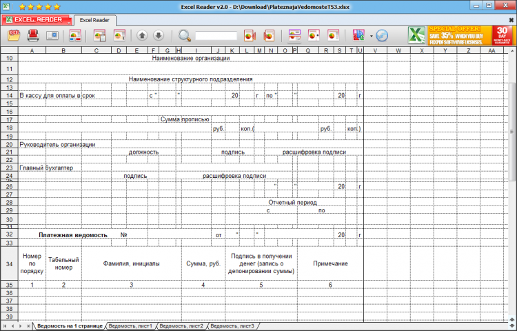 Excel Reader - это полезная программа, с помощью которой вы сможете открыть и просмотреть документ Excel, даже если на вашем компьютере не установлен пакет Microsoft Office. Эта программа работает независимо от него и позволяет только просматривать электронные таблицы.