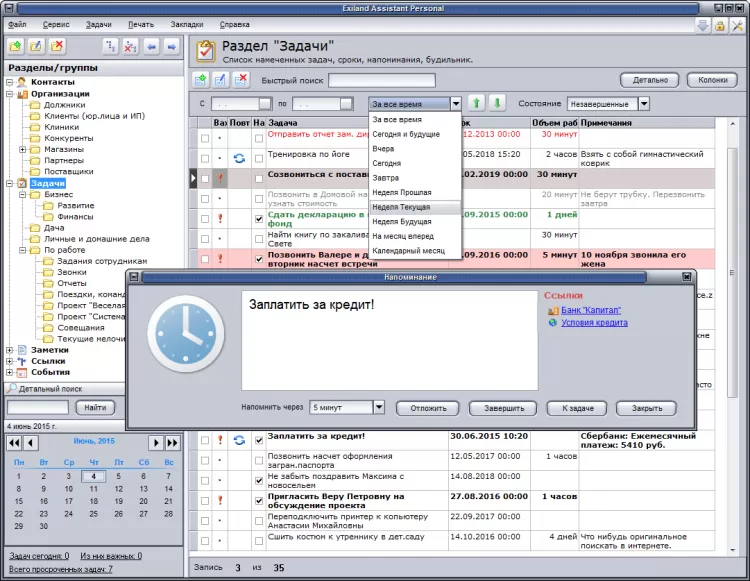 - планировщик задач для организации личных дел;