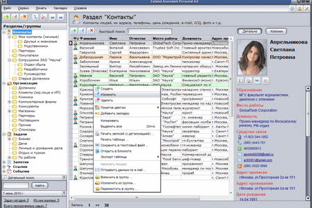 Exiland Assistant Free (бесплатный органайзер) - это бесплатная и удобная программа для ведения базы клиентов (физических, юридических лиц, ИП), партнеров, сотрудников, друзей, родственников с фото и детальной информацией. Быстрый поиск по базе, планировщик дел, напоминания.