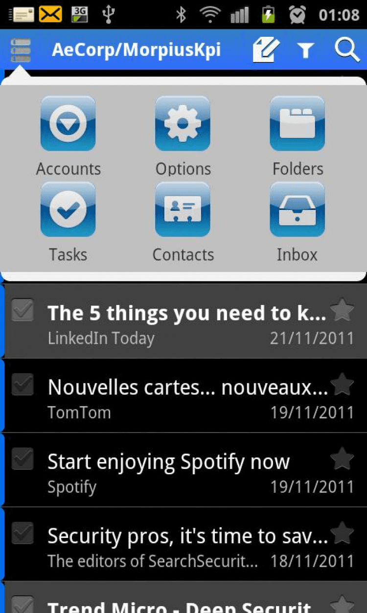 ExMail (Exchange) Эта программа позволит вам подключаться к почтовым серверам и получать электронную почту, контакты, календарь событий и задач в любой момент. Эта программа поддерживает такие почтовые протоколы, как Exchange ActiveSync (Exchange 2003, Exchange 2007, Exchange 2010, Microsoft BPOS), IMAP (Google, Yahoo Mail и т.д.) и POP3.