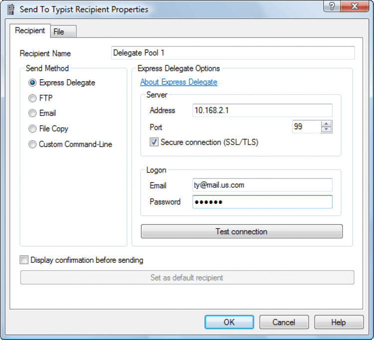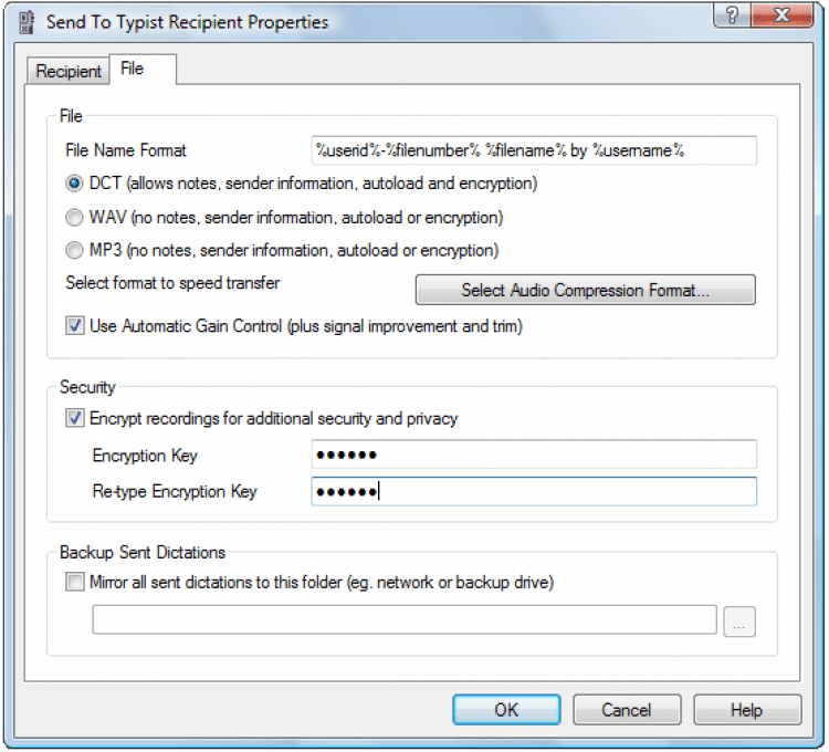 Записи Express Dictate сохраняет на диск в формате DCT, WAV или MP3. Если записями нужно поделиться с другими пользователями, сделать этого можно прямо из программы. Доступно два способа: отправка по почте или загрузка на удаленный FTP-сервер.
