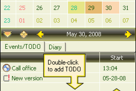 Для внесения новой заметки, необходимо дважды щелкнуть на пустом поле Окна Заметок, для внесения нового события – проделать то же самое в Окне Событий. Быстрый просмотр заметки возможен при поднесении курсора к этой заметке. Запланированное событие легко перенести на любой день простым перетаскиванием на нужный день в Календаре.