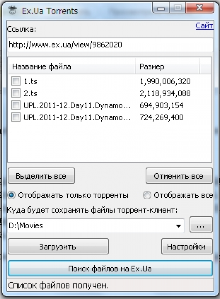 Ex.Ua Torrents Программа, которая скачивает торренты с указанного релиза ex.ua с возможностью добавить их в торрент-клиент пачкой. Программа имеет поиск по трекеру, позволяет просматривать описания.