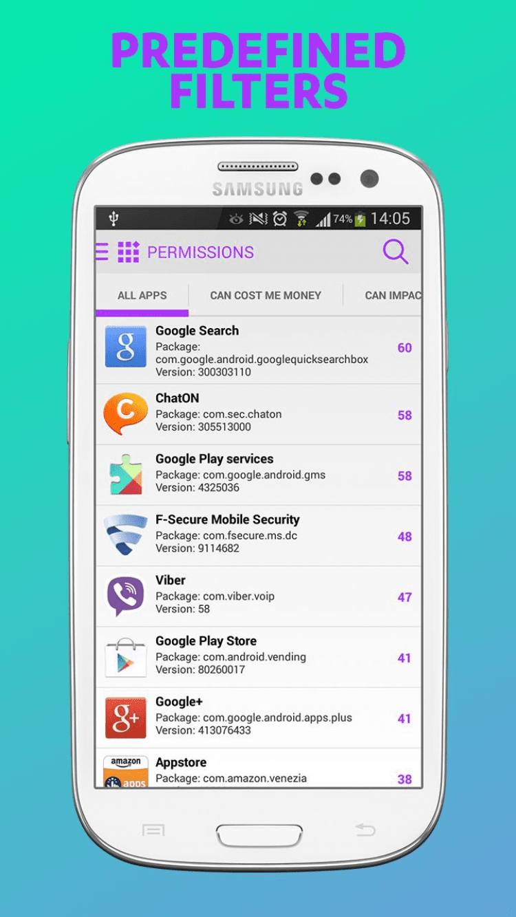 F-Secure App Permissions — эта программа позволяет просматривать список разрешений для установленных на вашем устройстве приложений. Это позволит вам сопоставить функционал приложений с их разрешениями, чтобы выявить потенциально вредоносное ПО и удалить его. Обратите внимание, что данное приложение не может редактировать разрешения, а позволяет только просматривать их список для выбранных приложений.