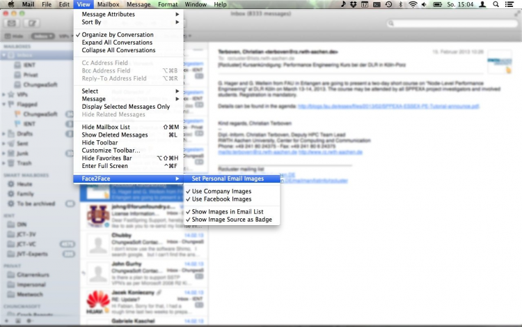Утилита, добавляющая возможность использовать новые аватары в стандартном почтовом клиенте Mac OS X. Программа позволяет использовать в клиенте аватары из Facebook, Gravatar или собственной базы Face2Face, что избавит вас от необходимости самостоятельно выполнять поиск желаемых изображений.