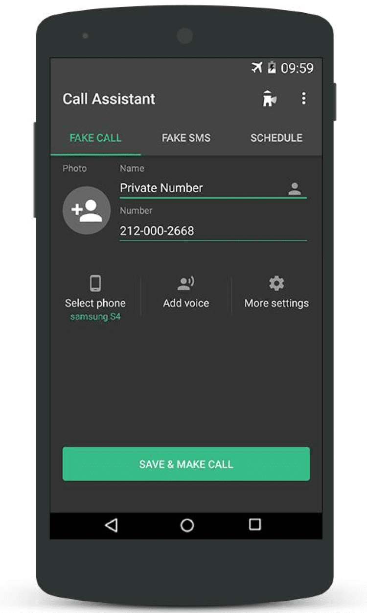 Fake Call & SMS Приложение, которое поможет вам избежать неприятных разговоров или просто повеселиться. Выберите время звонка, звонящего и его номер и ждите, в указанное время вам поступит звонок. Под этим предлогом вы можете выйти из помещения, или же сделать вид, что вам звонит президент. Кроме звонков, приложение может имитировать получение SMS-сообщения с заданным текстом.