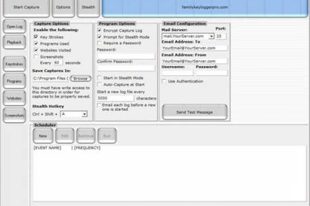 Family Keylogger Pro - это программа, которая позволяет отслеживать действия пользователей во время работы за компьютером. Вся информация сохраняется в зашифрованный лог-файл, который, через определенный интервал времени, может незаметно отправляться на указанный электронный адрес. Family Keylogger Pro отслеживает, когда и какие сайты посещал пользователь, а так же может делать снимки экрана.