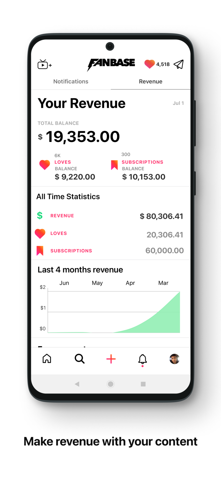 Присоединяйтесь к платформе, где вы можете получать реальные деньги за свой контент. Достаточно просто скачать Fanbase для Android.
