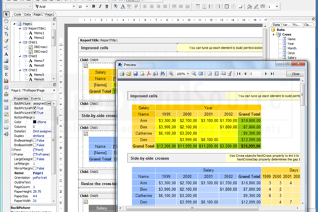 FastReport - это компонент для построения отчетов, представляет собой сочетание дизайнера, генератора и Preview отчетов. FastReport написан на 100% Object Pascal и может быть установлен в Borland Delphi 2-2005 и Borland C++Builder 3-6. По возможностям FastReport примерно соответствует ReportBuilder 7.хх, а кое-в чем и превосходит его. Некоторые из возможностей FastReport поистине уникальны. Так, генератор позволяет создавать в run-time наборы данных (таблицы, запросы), создавать диалоговые формы для запроса параметров у пользователя. На встроенном языке - аналоге Pascal - можно выполнять довольно сложную обработку данных, управлять логикой работы созданных диалоговых форм и отчетов. Код FastReport, несмотря на его мощь, очень мал.