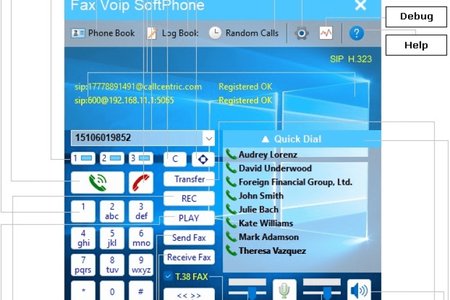 Fax Voip Softphone — эта программа является мощным и уникальным SIP / H.323 программным телефоном при помощи которого можно осуществлять телефонные вызовы, записывать разговор по телефону, воспроизводить аудио файлы в телефонную линию, а также отправлять/принимать T.38 и аудио факсы.