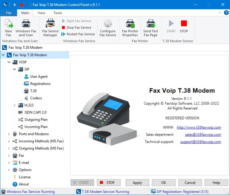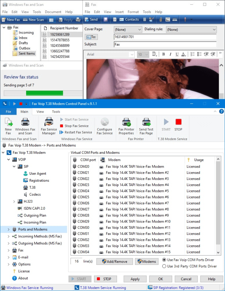 Что такое Fax Voip T.38 Модем? С точки зрения вашей факсовой и голосовой программы, это голосовой факс-модем. Fax Voip T.38 Модем устанавливает Виртуальные COM порты и виртуальные модемы Fax Voip 14.4K TAPI Voice-Fax Modems в вашей системе, с которыми вы легко можете настроить вашу факсовую программу.