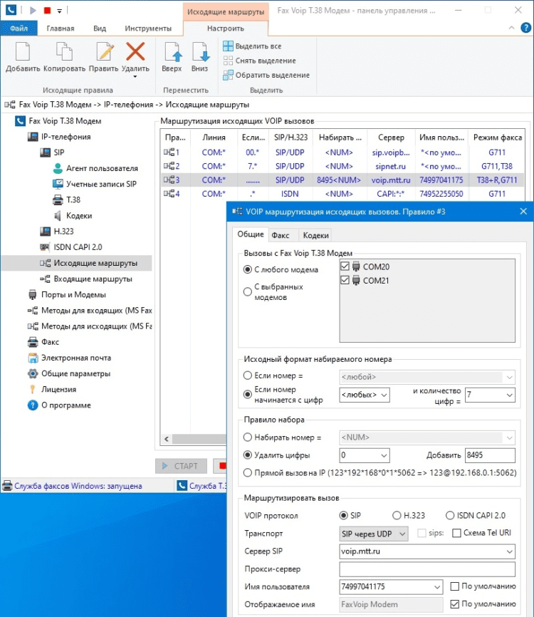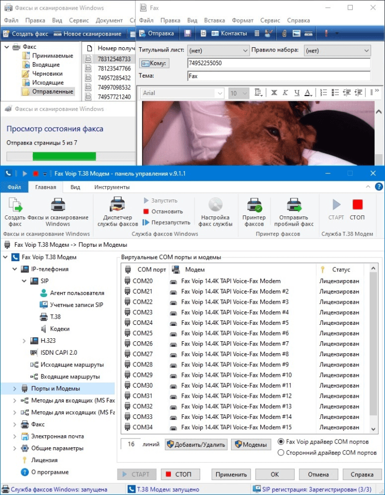 Что такое Fax Voip T.38 Модем? С точки зрения вашей факсовой и голосовой программы, это голосовой факс-модем. Fax Voip T.38 Модем устанавливает Виртуальные COM порты и виртуальные модемы Fax Voip 14.4K TAPI Voice-Fax Modems в вашей системе, с которыми вы легко можете настроить вашу факсовую программу.