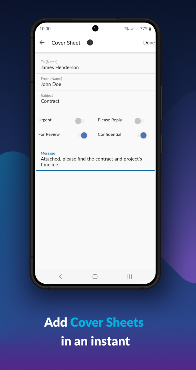 Одной из главных особенностей программы FAX.PLUS является встроенный инструмент для сканирования бумажных документов. Это помогает быстро оцифровывать любые документы и избавляет от необходимости перепечатывать их на компьютере или телефоне. А приятным дополнением станет возможность подписывать документы на экране смартфона.