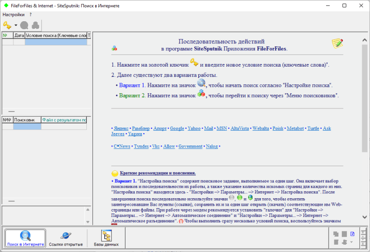 - Поиск в содержании файлов, подготовленных в Word, Excel, HTML и других редакторах, по логическому выражению, состоящему из фраз.