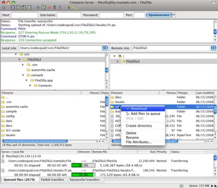 Это клиент является кроссплатформенным. С нашего сайта вы можете также скачать FileZilla для Windows и FileZilla для Linux.