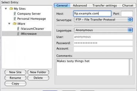 Программа поддерживает FTP, FTPS и SFTP протоколы, а также IPv6. Благодаря встроенному Менеджеру сайтов, вы сможете сохранить логины, пароли и другие настройки подключения (тип сервера, режим передачи данных и пр.) для более быстрого и удобного доступа к этим сайтам.