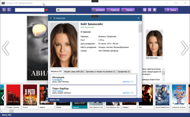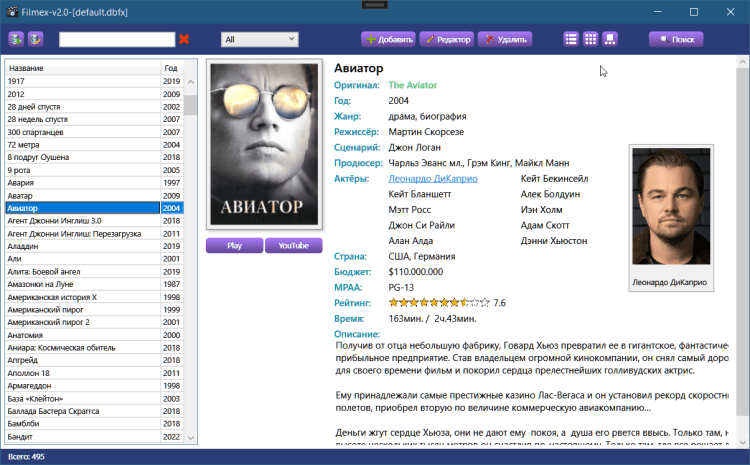 Описания и все дополнительные данные к фильмам программа берёт с сайта Кинопоиск.