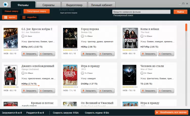 Filmoscop - это уникальный сервис, объединяющий в себе функции торрент-клиента, видеоплеера и онлайн каталога. Абсолютно бесплатно, без рекламы и регистрации Вам доступен огромный каталог фильмов и сериалов – их количество постоянно увеличивается!