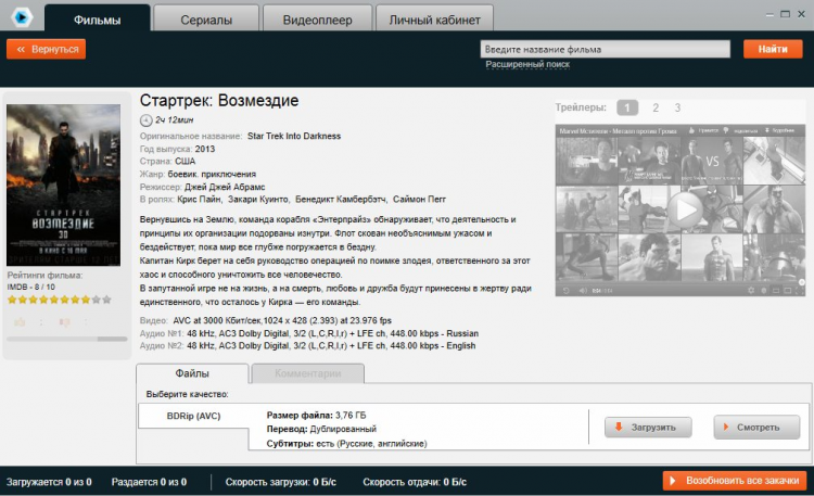 - Функция «моментальное начало просмотра» не заставит Вас ждать полной загрузки фильма.