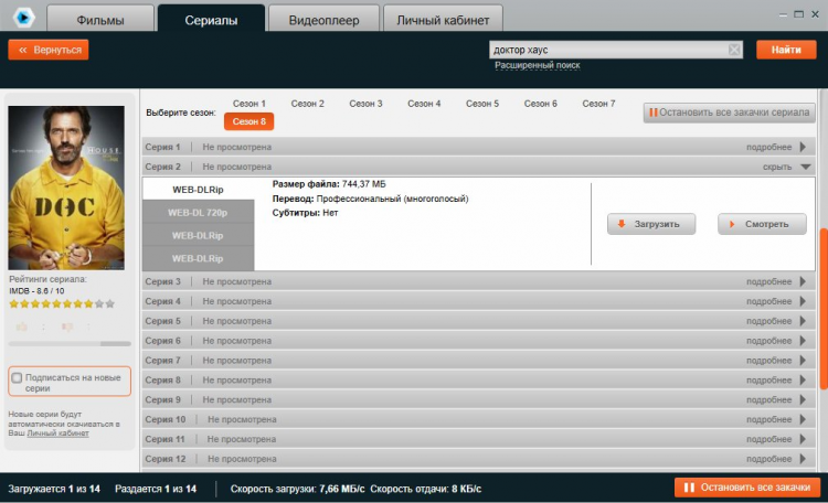 - Возможность подписки на новые серии – сразу после выхода новой серии выбранного сериала, она будет автоматически загружена и доступна к просмотру.