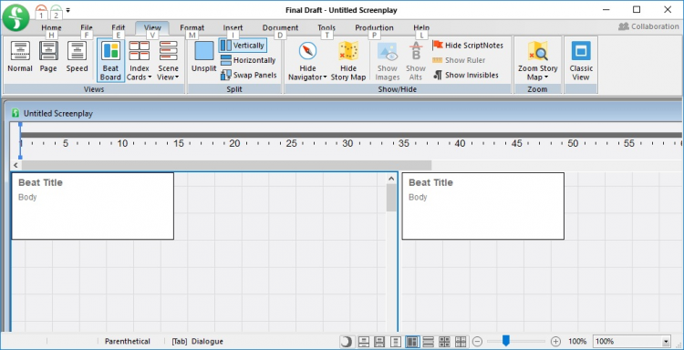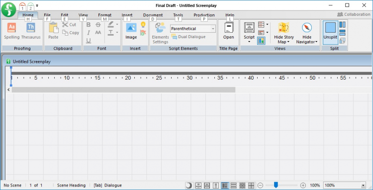 На первый взгляд, интерфейс Final Draft может показаться непривлекательным, но, с другой стороны, доступ ко всем необходимым инструментам и функциям будет всегда у вас под рукой. Это позволит мгновенно создать новый проект, выбрать один или несколько встроенных шаблонов, основываясь на типе сюжета. Также, для удобства работы с проектами, программа позволяет переключаться между несколькими режимами просмотра, добавлять комментарии, использовать специальные символы, а также добавлять карточку с описанием сцены.