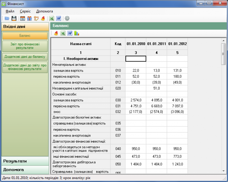 Финансист - программа, предназначенная для анализа финансового состояния предприятия. Анализ производится с использованием стандартной финансовой отчетности: Баланса и Отчета о финансовых результатах (Украина). Расcчитывается полный спектр финансовых коэффициентов и аналитических таблиц. Есть возможность экспорта данных и представления их в виде графиков и диаграмм.