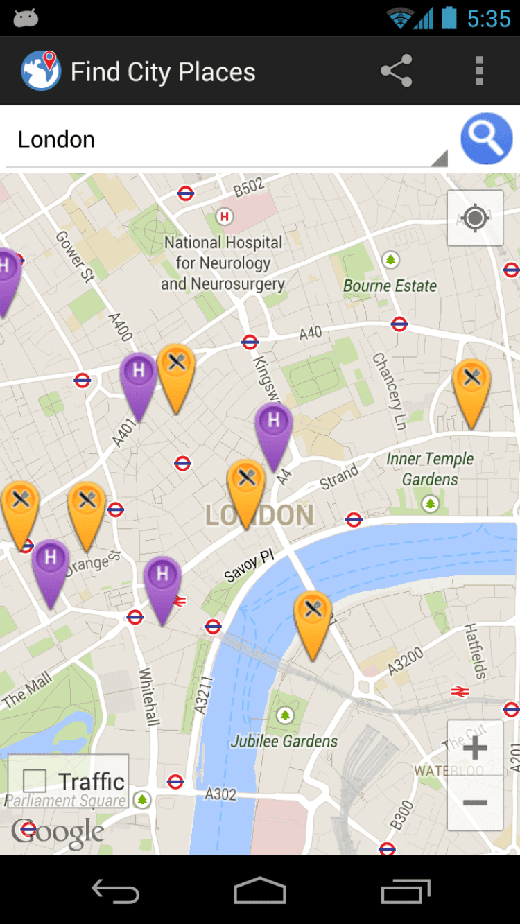 Find City Places Приложение, которое поможет вам найти ближайшие места для отдыха и развлечения в более чем 150 городах мира. Просто введите тип интересующего вас заведения, а программа выполнит поиск и отобразит их местоположение на карте. После этого вы сможете не только узнать, как добраться до места, но и просмотреть рейтинг, адрес, номер телефона и страницу в интернете.