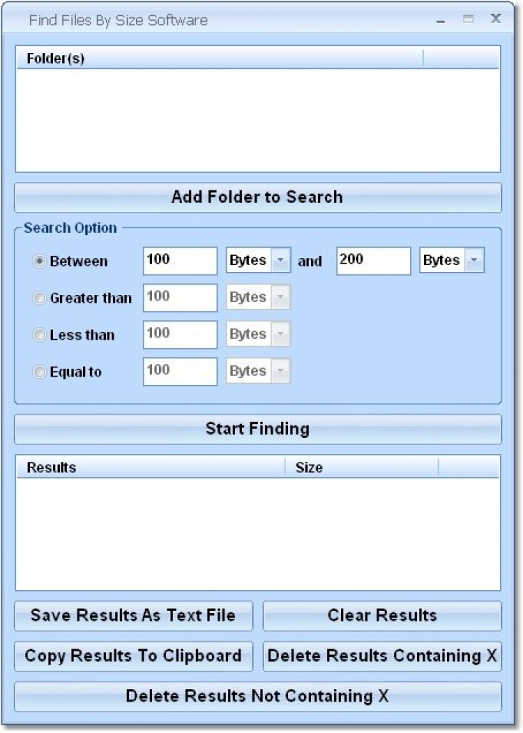 Find Files By Size Software Позволяет искать файлы заданного размера.