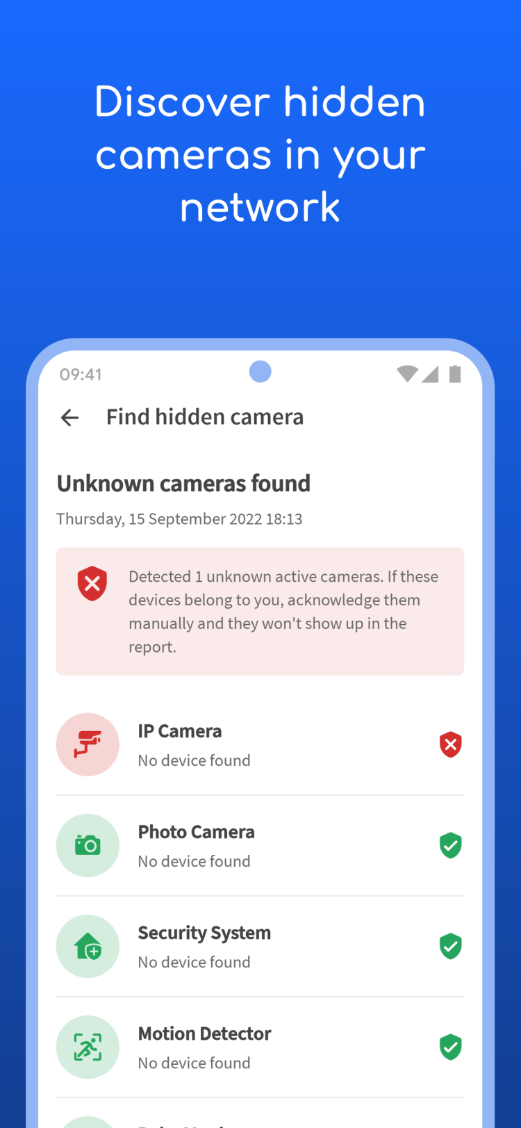 - функция обнаружения скрытых камер