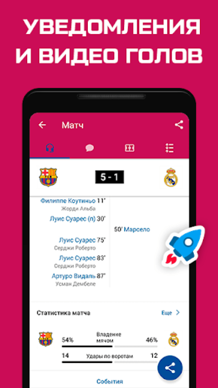 - Онлайн-трансляции матчей, составы команд;