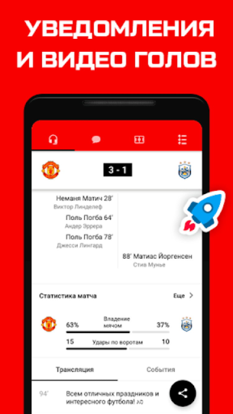 - Чаты и комментарии для общения с другими болельщиками.