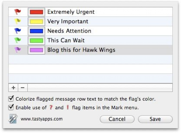 Flagit! Добавляет в приложение Mail возможность помечать письма цветными флажками. Эти флажки пользователи могут создавать самостоятельно, выбирая любые цвета и давая им собственные названия. Таким способом письма можно помечать, например, как особо важные, интересные и т.д.