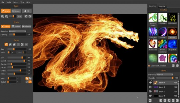Flame Painter 3 Pro Уникальный графический редактор, который позволяет создавать оригинальные рисунки, красивые спецэффекты и яркие фоны с помощью "огненных" кистей.