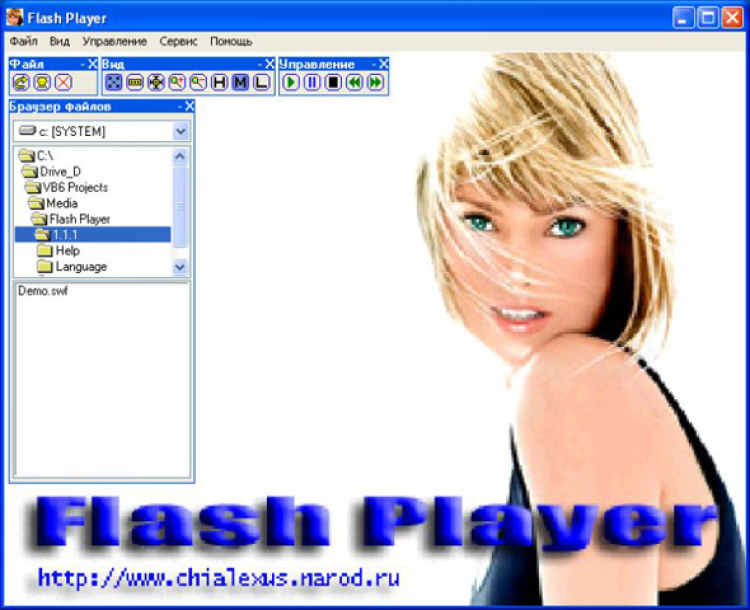Flash Player - это проигрыватель флэшек на основе ActiveX-компонента фирмы Adobe. Не используется никаких наворотов и примочек. Реализованы только стандартные приемы работы с swf-файлами. В новой версии улучшен интерфейс, добавлены панели инструментов и специализированный браузер файлов, имеется поддержка других языков.