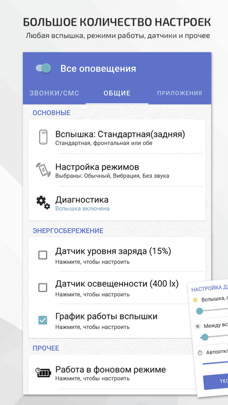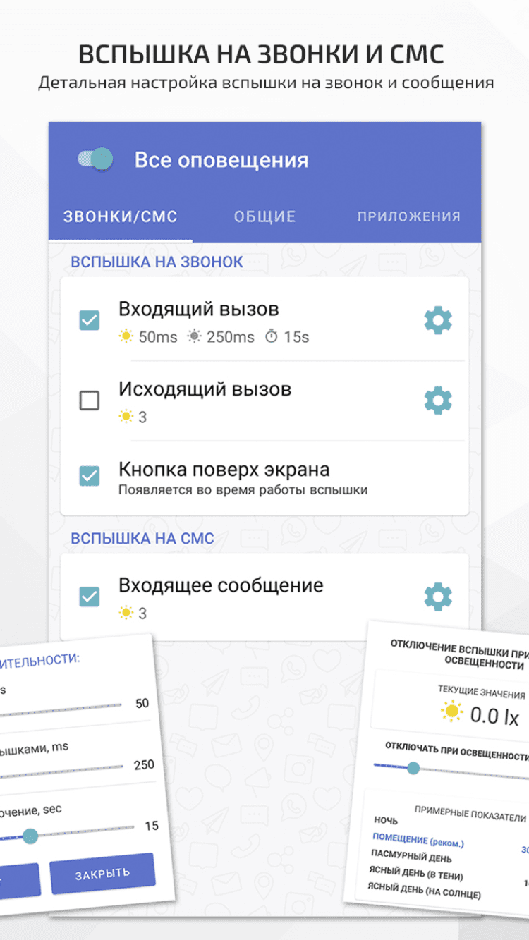 Вспышка на звонок - простой в использовании инструмент, позволяющий настроить использование вспышки вашего смартфона в качестве оповещения для различных событий.