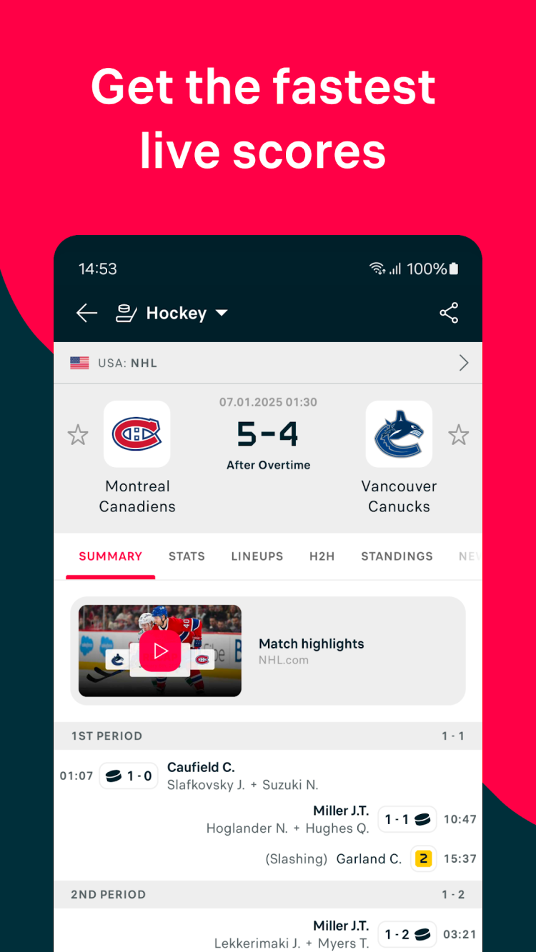 Flashscore — это полезное приложение для спортивных фанатов. Оно предоставляет вам всю необходимую информацию о текущих и предстоящих играх, а также молниеносные обновления счета в реальном времен,и для более чем 30 видов спорта.