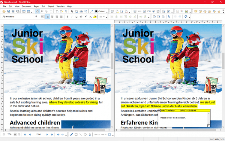 Часто бывает, что текст внутри PDF документа нельзя отредактировать, потому, что страница представляет собой изображение. В этом случае пригодится OCR - функция распознавания текста, которая превратить любой абзац в редактируемый. Так же при работе над большими документами или, например, переводе с одного языка на другой, пригодится опция показа документов бок о бок.