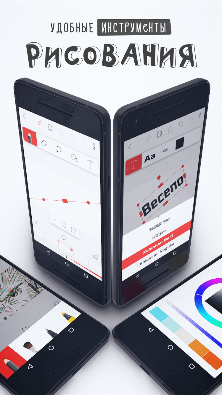- продвинутый набор инструментов: кисти, лассо, заливка, линейки, ластик и пр.;