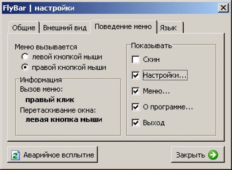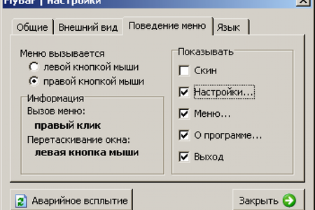 - Можно выбрать, какой кнопкой мыши вызывать меню - левой или правой;
