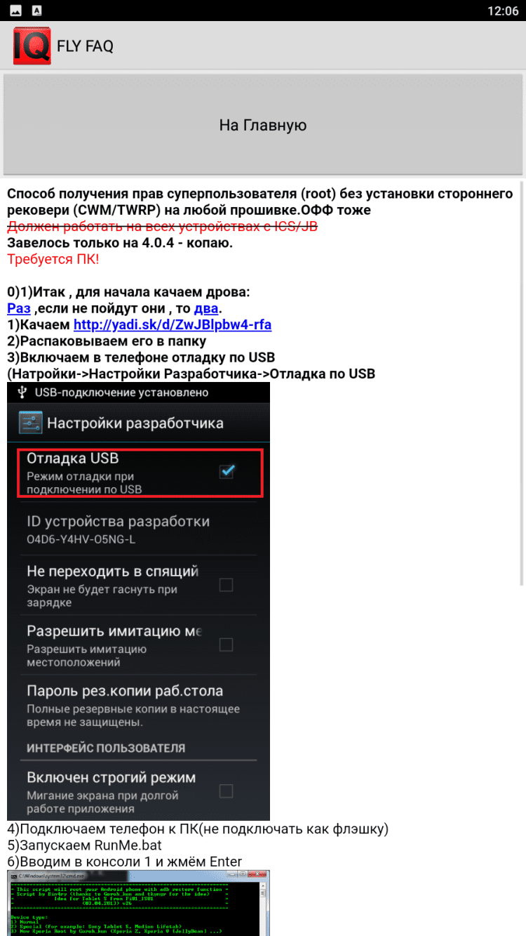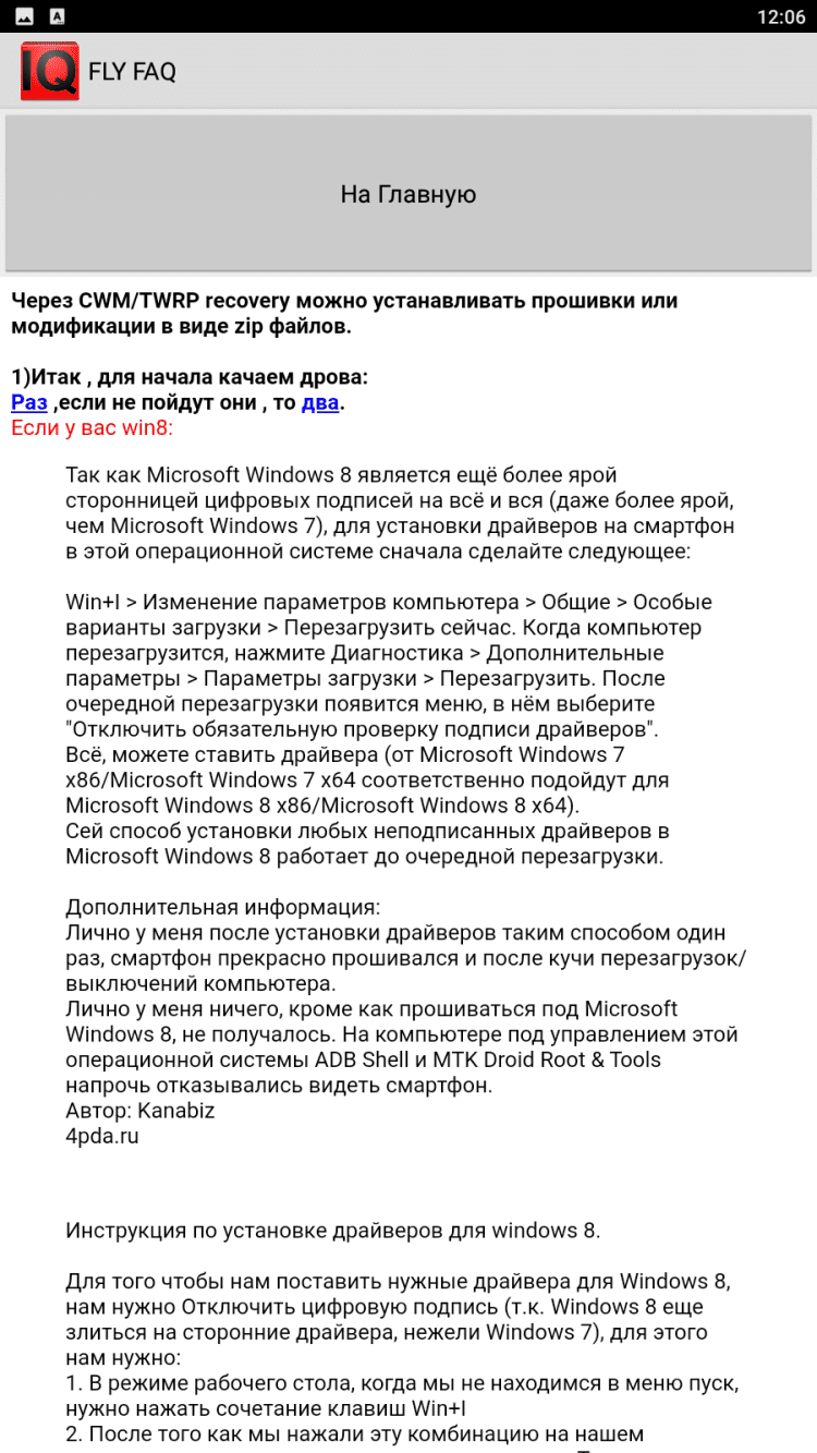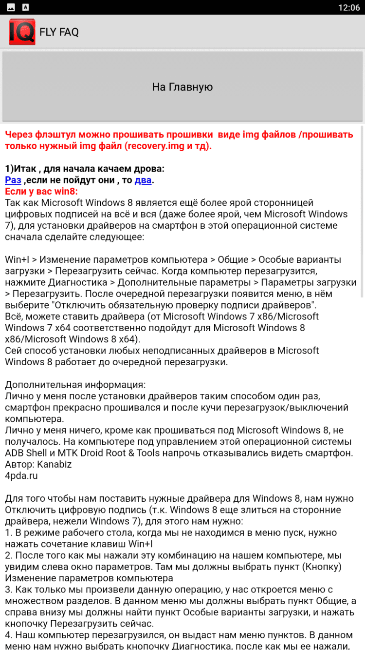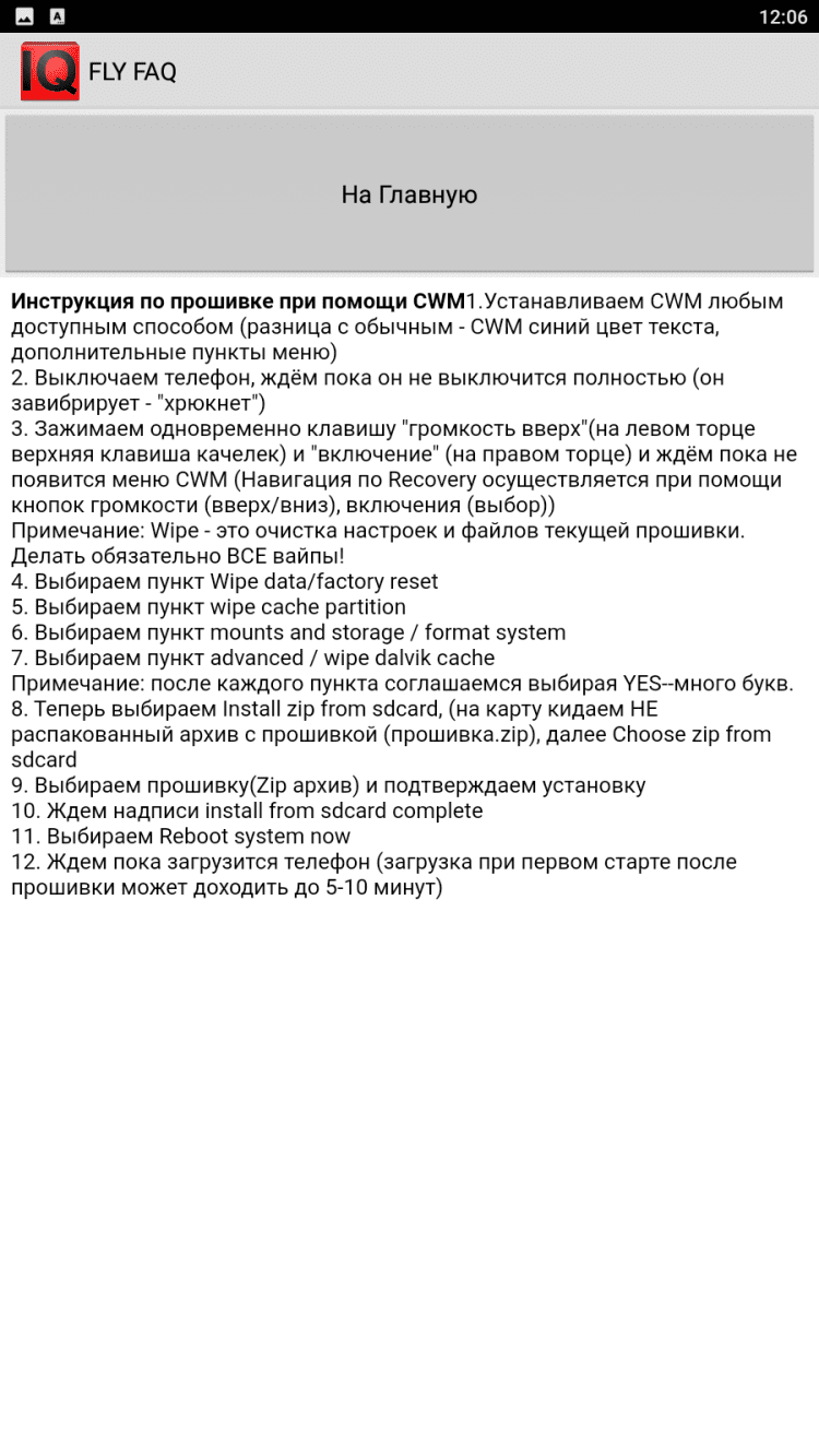 FlyFAQ инструкции для FlyIQ440 В эту программу вошли инструкции и полезные советы для пользователей мобильных устройств Fly IQ 440. Здесь вы найдете подробные технические характеристики своего устройства, информацию о различных прошивках, о получении прав суперпользователя, а так же о многом другом. Для удобства чтения, программа содержит темную и светлую темы оформления.