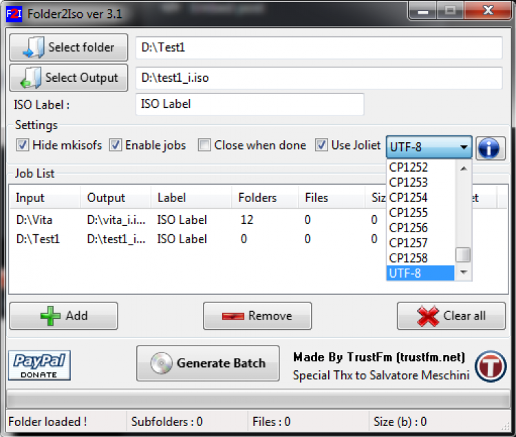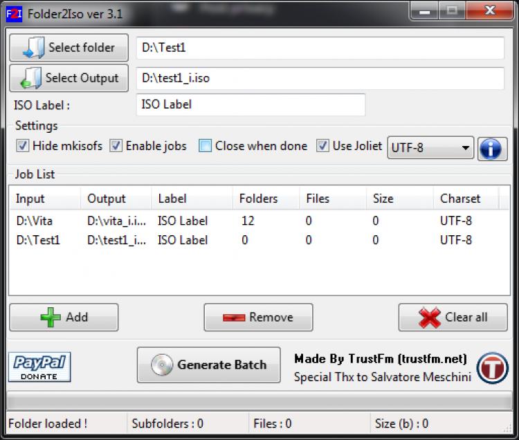 Folder2Iso - это чрезвычайно простая программа, которая умеет делать лишь одно: превращать обычные папки в ISO образы. Все что для этого нужно, выбрать папку на жестком диске, место для сохранения образа и метку. Есть в программе Folder2Iso и пара дополнительных опций, которые могут пригодиться в работе. Одна из них позволяет составлять список задач для создания нескольких образов разных папок. Еще программа позволяет выбрать кодировку образа.