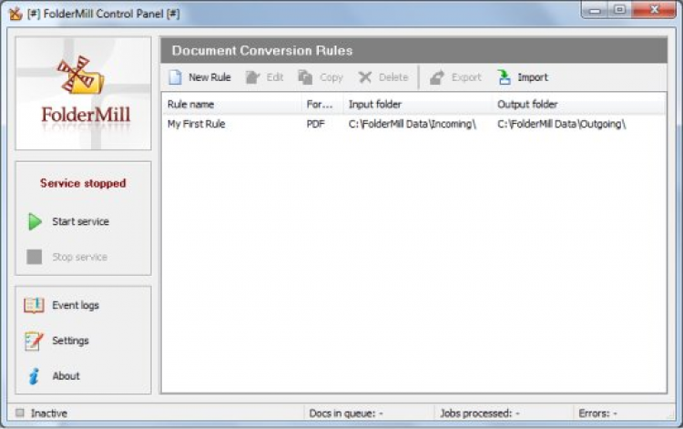 FolderMill - это программа, позволяющая конвертировать различные документы в PDF, JPEG, TIFF и другие графические форматы.