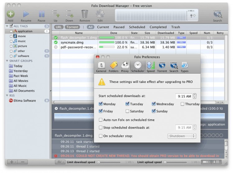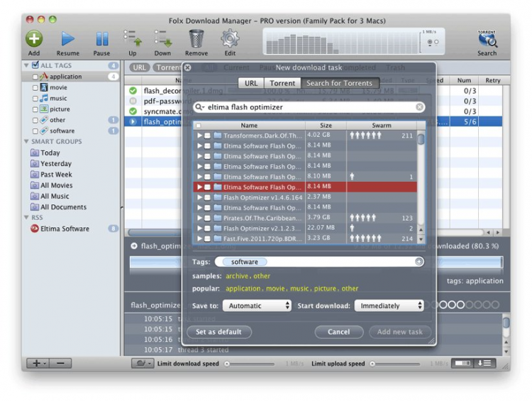Бесплатный менеджер закачек и торрент клиент для Mac OS X. Теперь Вам не нужно искать две отдельные программы для скачивания обычных файлов и торрент файлов. Достаточно установить Folx, который с легкостью справится с обеими задачами.