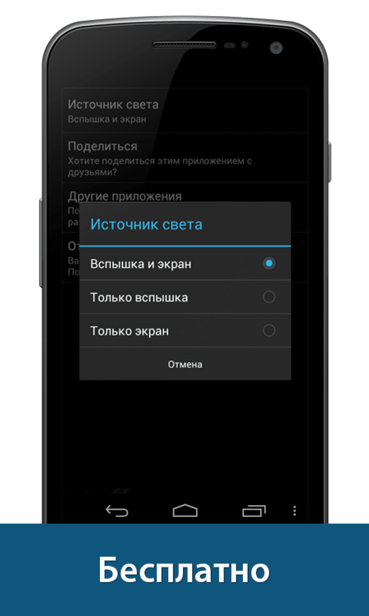 Легкое и быстрое приложение, не требующее лишней памяти и ресурсов процессора, а также оптимизированное для быстрого включения. Запустив его, вы сразу получите источник света. Эта надежная и простая программа всегда спасет вас в ситуации когда вам нужен фонарик. Для освещения используется LED вспышка камеры и экран телефона. Программа полностью бесплатна, не содержит рекламы и не требует каких-либо настроек. Вам достаточно запустить приложение и ваш телефон превратится в яркий фонарик.